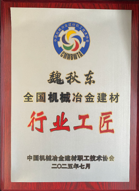 協會副會長魏秋東、程永席榮獲全國機械冶金建材行業 “行業工匠”榮譽稱號