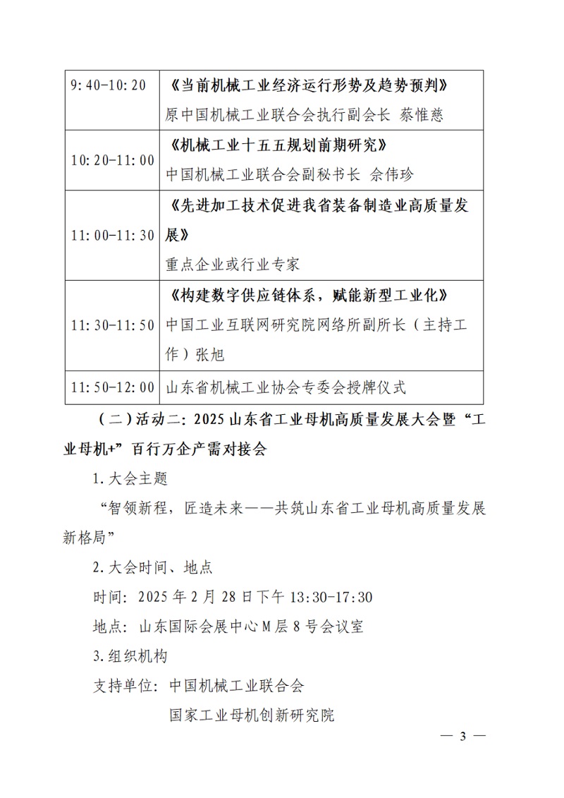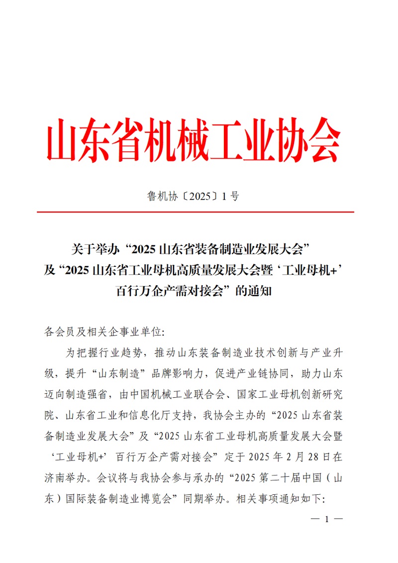 關于舉辦“2025 山東省裝備制造業發展大會及“2025 山東省工業母機高質量發展大會百行萬企產需對接會”的通知